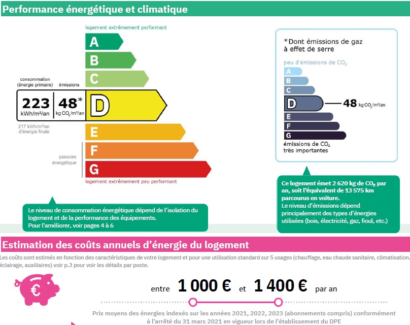 DPE en kWh/m²/an : 223 D et 48 D