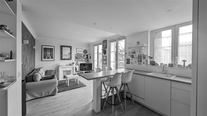 Grande pièce de vie de 23 m² avec cuisine ouverte,