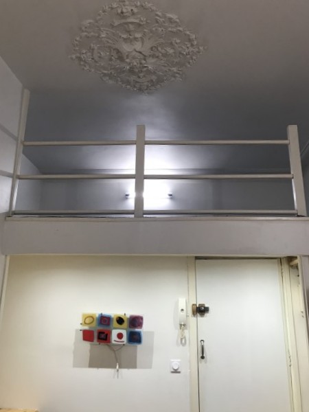 Un studio comprenant une pièce de vie, une kitchenette, une salle d’eau avec wc et une mezzanine.