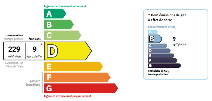 Montant estimé des dépenses annuelles d’énergie pour un usage normal standard entre 757 et 1 025€/an (prix moyen des énergies indexés au 01/01/2021 abonnements compris)