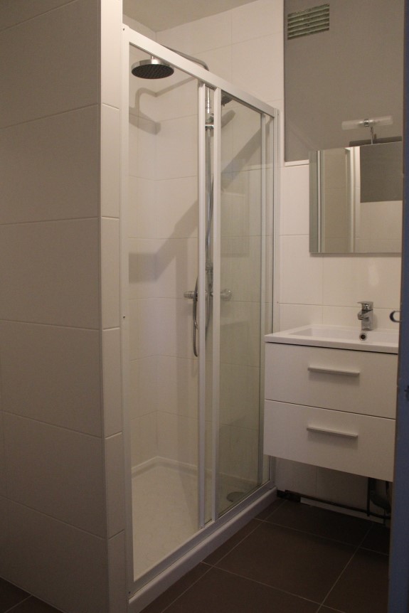 Une entrée, une pièce de vie avec coin cuisine aménagée et équipée, une chambre avec placard et une salle d’eau avec WC.