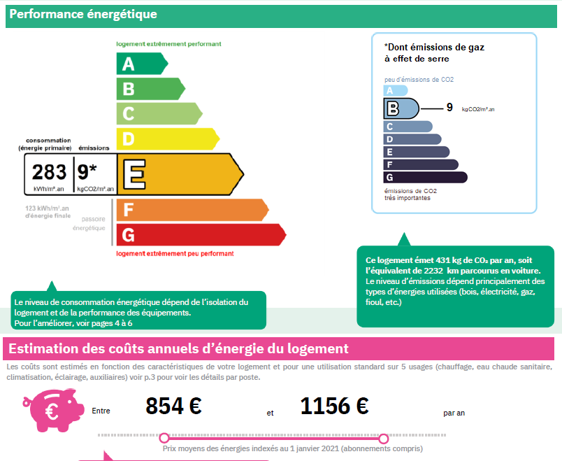 DPE en kWh/m²/an : 283 kWh/m²/an